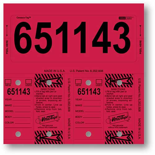 - Each Consecu-Tag makes a clear plastic-backed window stock sticker and 2 self-protecting key tags
